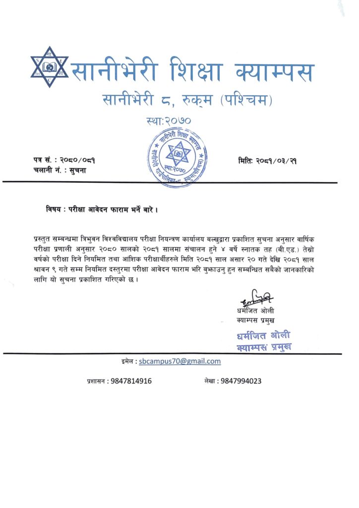 बी.एड. तेस्रो वर्षको परीक्षा फाराम भर्ने बारे सूचना ।।